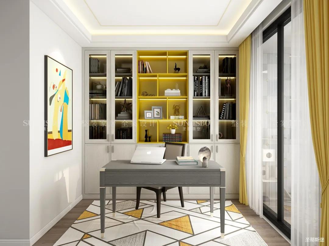 在書房中,目之所見,從空間到陳設,色調由淺及深,在硬朗與柔軟、明亮與暗啞之間合理切換,精心雕琢出層次感。時尚高雅的色調變化和家具的紋理在線條的交錯下,相互交匯出美學與功能的書房空間,簡單的臨窗觀景,讓身心即刻得到放松。