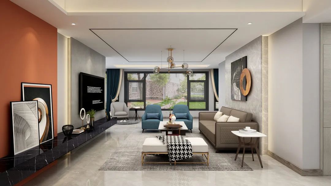 溫潤如玉的大理石、真皮材質的沙發、金屬瓷器擺件
